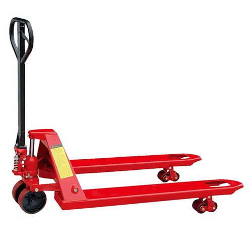 Low Height pallet trucks with 1.5 and 2.0 ton capacity. We use standard design 2.5 ton capacity pump for low height pallets. Single valve cartridge for easy maintenance. Lead in and lead out rollers reduce damage to pallet.